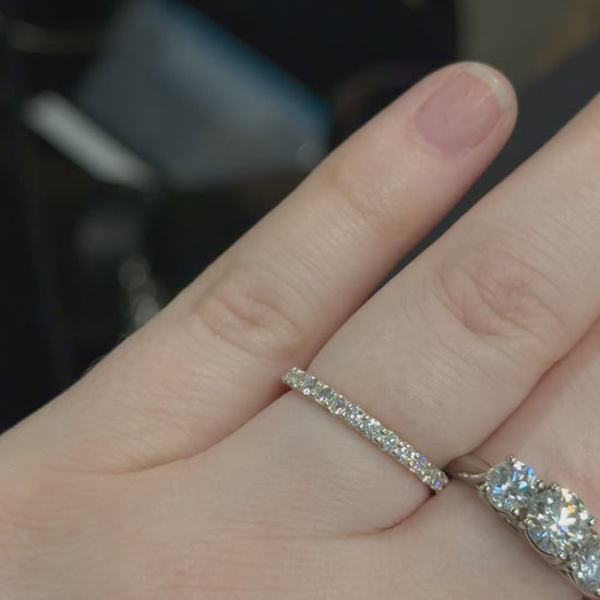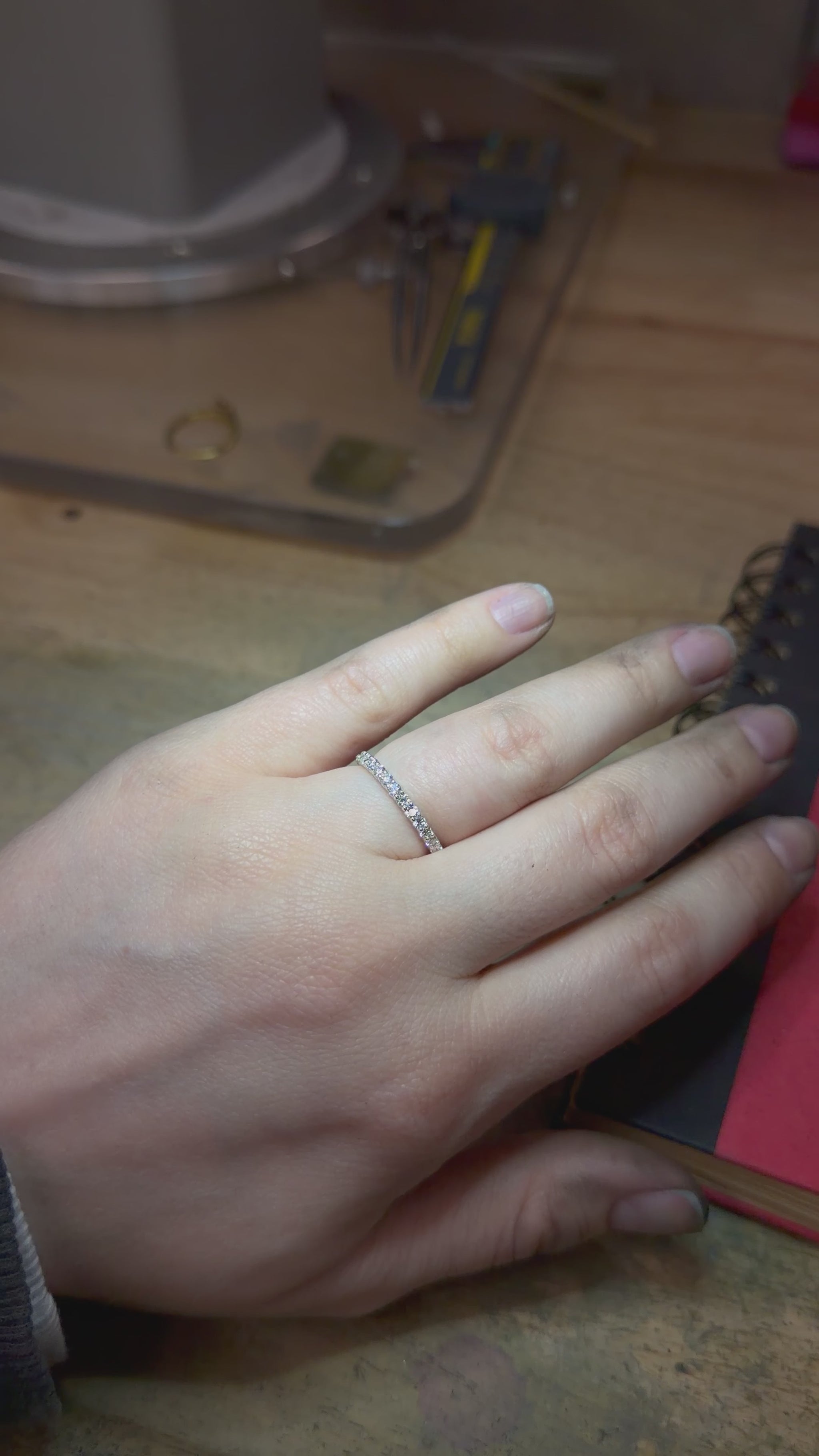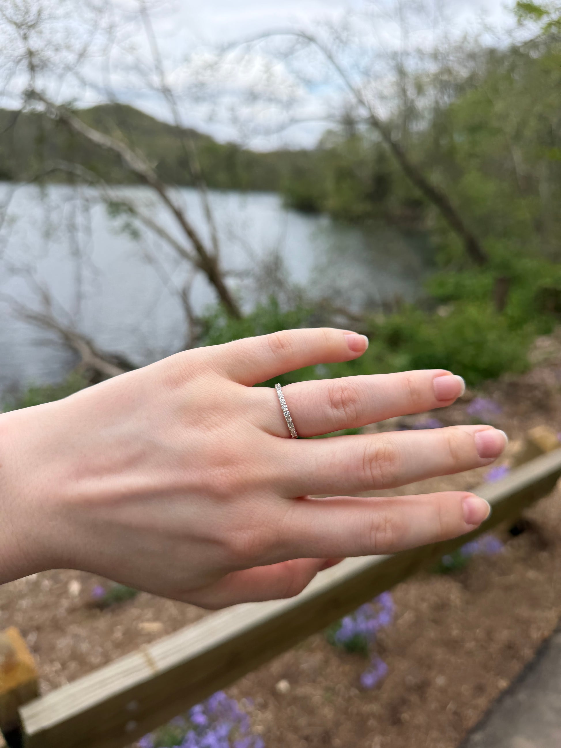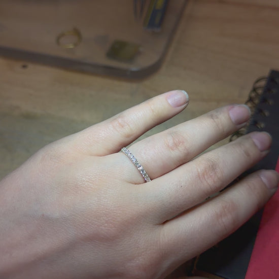 ✧ 14 • 2mm lab-grown diamonds each set by hand— half of the band sparkles with diamonds, while the other half remains simple